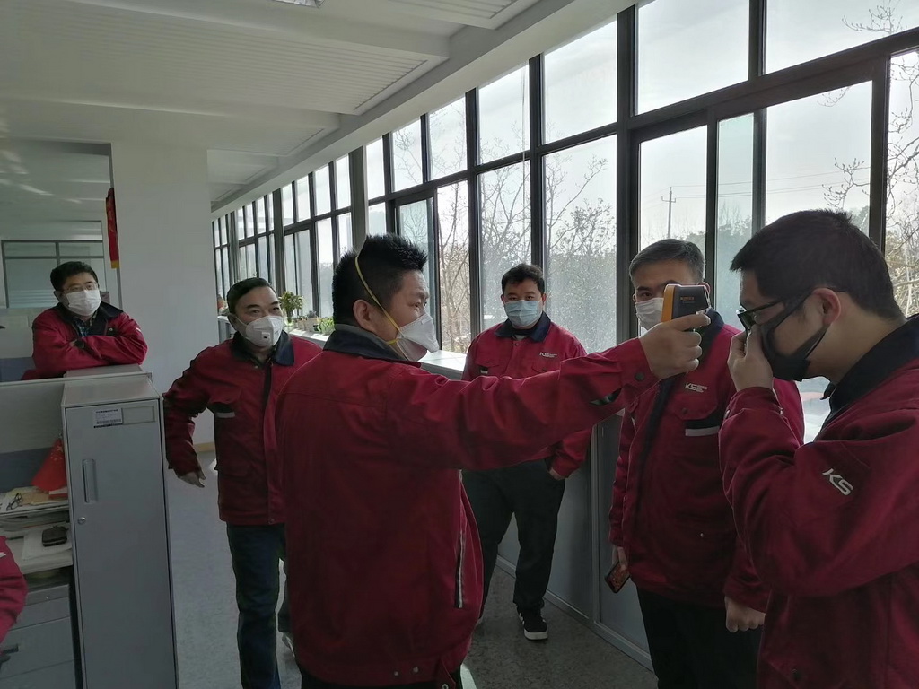 根據(jù)當(dāng)前疫情防控及復(fù)工形勢和要求,科試集團(tuán)成立了應(yīng)對新型冠狀病毒感染肺炎防疫防控復(fù)工生產(chǎn)工作領(lǐng)導(dǎo)小組,根據(jù)疫情發(fā)展情況,按照政府對防疫防控的要求,以及公司復(fù)工生產(chǎn)經(jīng)營要求,及時研究對策,有效組織好防疫防控、組織好生產(chǎn)經(jīng)營。復(fù)工前組織對所有公共場所:電梯、空調(diào)、衛(wèi)生間、開水間、單身宿舍、會議室、食堂等進(jìn)行消毒,上報政府所需材料,嚴(yán)格按照標(biāo)準(zhǔn)建立了科學(xué)有序的企業(yè)疫情防控體系,從人、物、措施三方面加強疫情防控,各類防疫物資全部提前發(fā)放到位,集團(tuán)上下為2月10日按時復(fù)工做好了全面且充分的準(zhǔn)備工作。鐘樓區(qū)董區(qū)長,北港街道鐘書記、楊主任,區(qū)政府管委會各部門紛紛登門,嚴(yán)格按照要求進(jìn)行復(fù)工前現(xiàn)場核查,對公司的各項措施給予高度贊譽。董事長姜漢軍提出,企業(yè)疫情防控工作一定要做細(xì)、做實、做到位,讓員工安心、家屬放心。企業(yè)是為社會創(chuàng)造價值的,疫情當(dāng)前,防控工作要擺在第一位,同時生產(chǎn)經(jīng)營工作不能松懈,我們要高度重視、有條不紊做好各項工作,繼續(xù)為實現(xiàn)今年經(jīng)濟(jì)發(fā)展目標(biāo)和任務(wù)而努力。